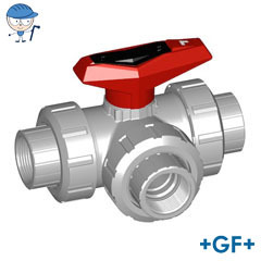 3-Way ball valve type 543 PVC-C L-port With solvent cement spigots metric